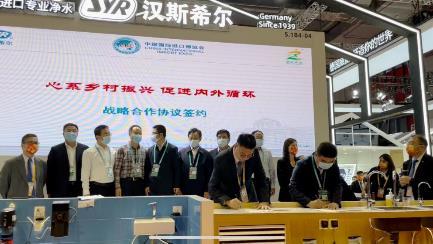11月6日,第四屆中國國際進口博覽會正式開幕的第二天,陜西省榆林市定邊縣委領導與德國SYR漢斯希爾品牌簽署戰略合作協議。